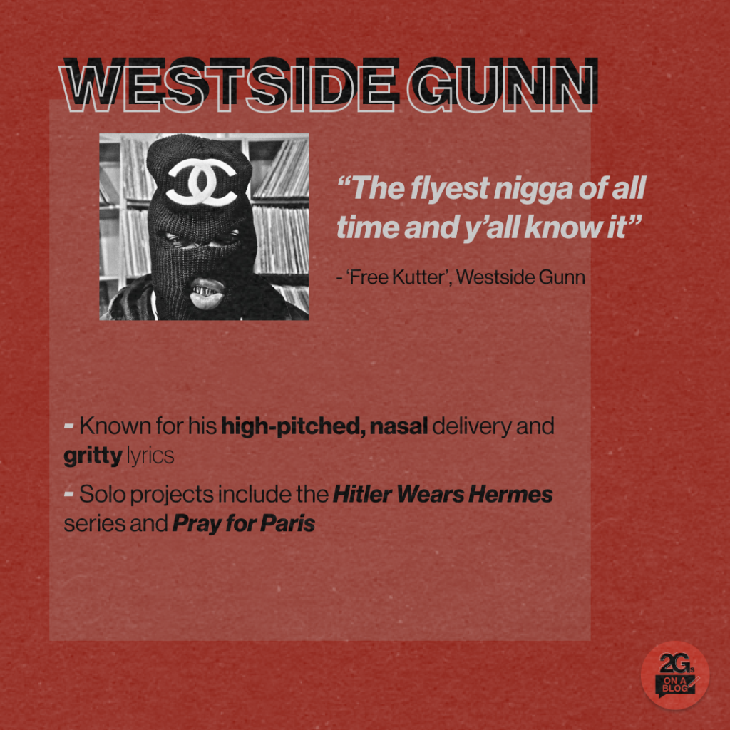Artists like Migos, Young Thug, and Carti have grabbed headlines over the last decade for their adlibs – lest we forget Carti’s purely adlibbed feature on ‘RAF’, or Thug’s 11-second “skrr” on ‘Halftime’. Flo Milli’s simple but incredibly effective “Flo Milli shit” is a personal favourite adlib in the game currently (especially when executed right on time with the beat, as she does on tracks like ‘In the Party’). However, if it’s adlibs you’re looking for, look no further than the Griselda boys and Westside Gunn in particular. Nearly every Westside verse I’ve heard has come armed with an artillery full of gunshot adlibs, to the extent he even chucks them in on his mate’s verses as they rap.